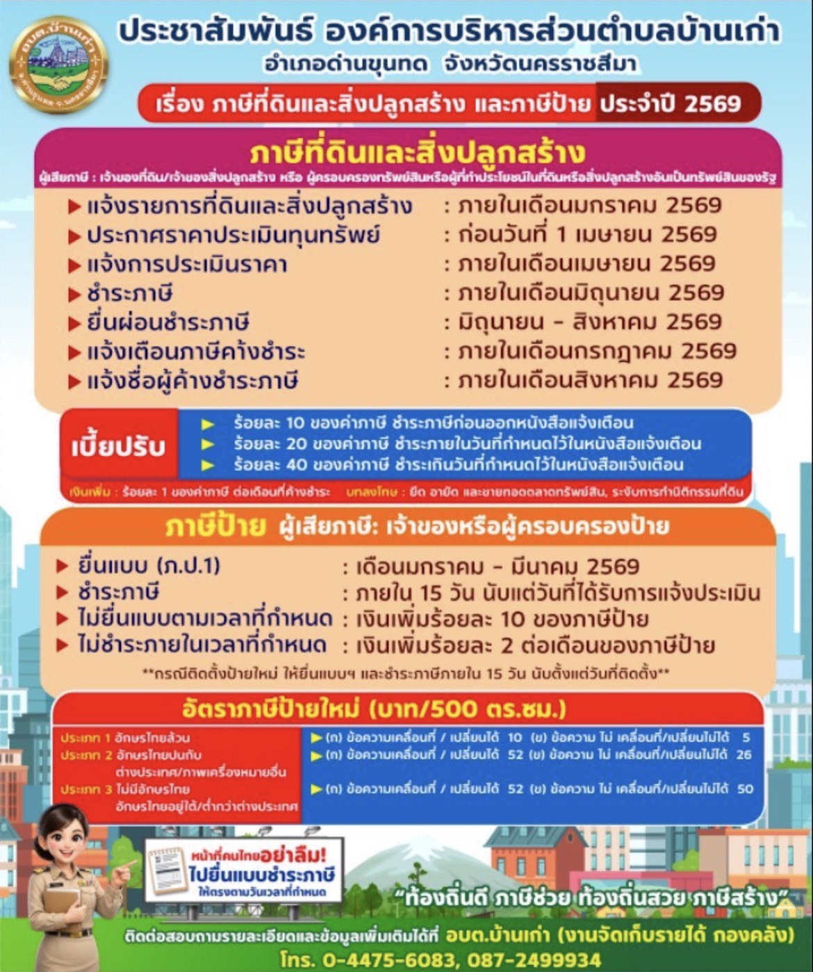 ประชาสัมพันธ์ การชำระภาษีที่ดินและสิ่งปลูกสร้าง และภาษีป้าย ประจำปี 2569 |