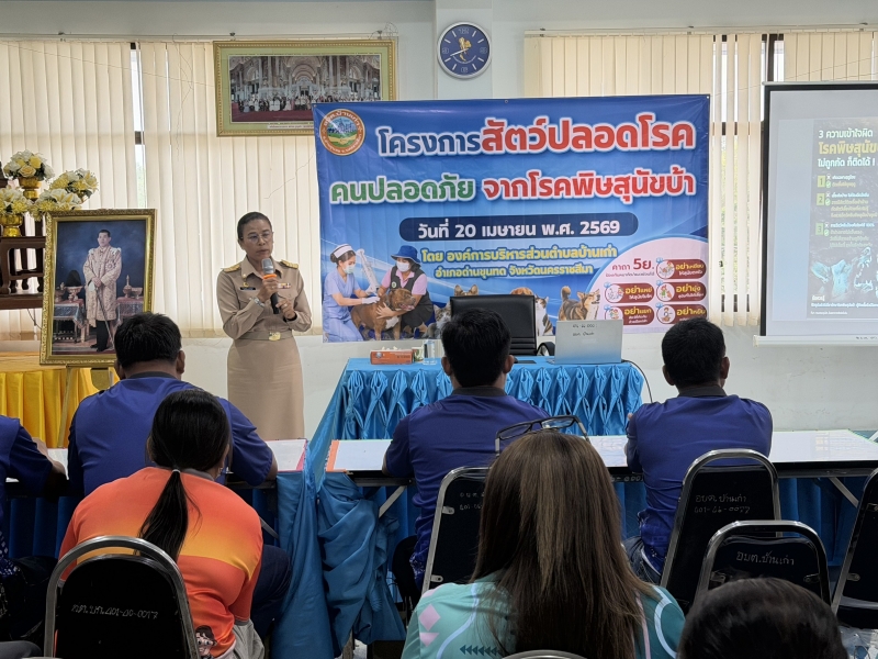 วันที่ 20 เมษายน 2569 นำโดย นายธนดล กูกขุนทด นายกองค์การบริหารส่วนตำบลบ้านเก่า ได้จัดโครงการสัตว์ปลอดโรค คนปลอดภัย จากโรคพิษสุนัขบ้า ประจำปีงบประมาณ 2569