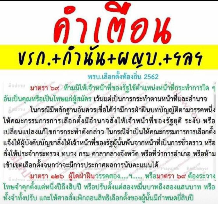 ประชาสัมพันธ์ข้อห้ามในการหาเสียงเลือกตั้ง |