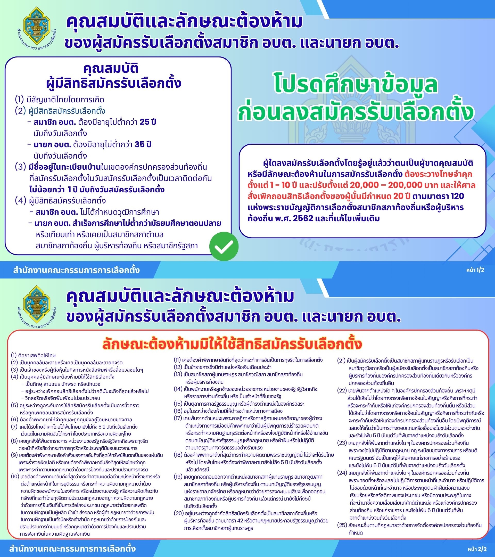 ประชาสัมพันธ์ คุณสมบัติและลักษณะต้องห้ามของผู้สมัครรับเลือกตั้งสมาชิก อบต. และนายก อบต. |