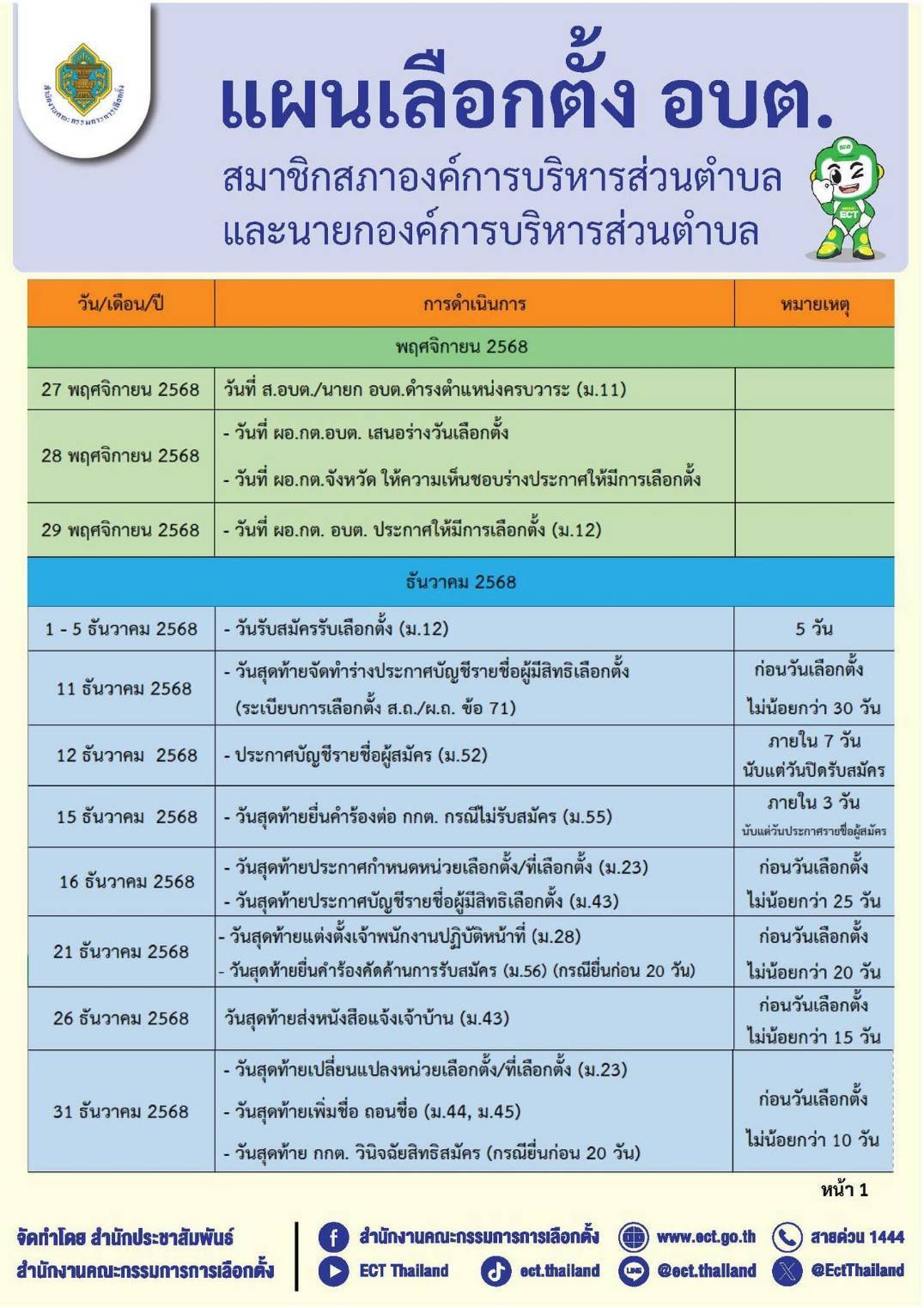 ขอประชาสัมพันธ์ ปฏิทินเลือกตั้งสมาชิกสภาองค์การบริหารส่วนตำบลและนายกองค์การบริหารส่วนตำบล |
