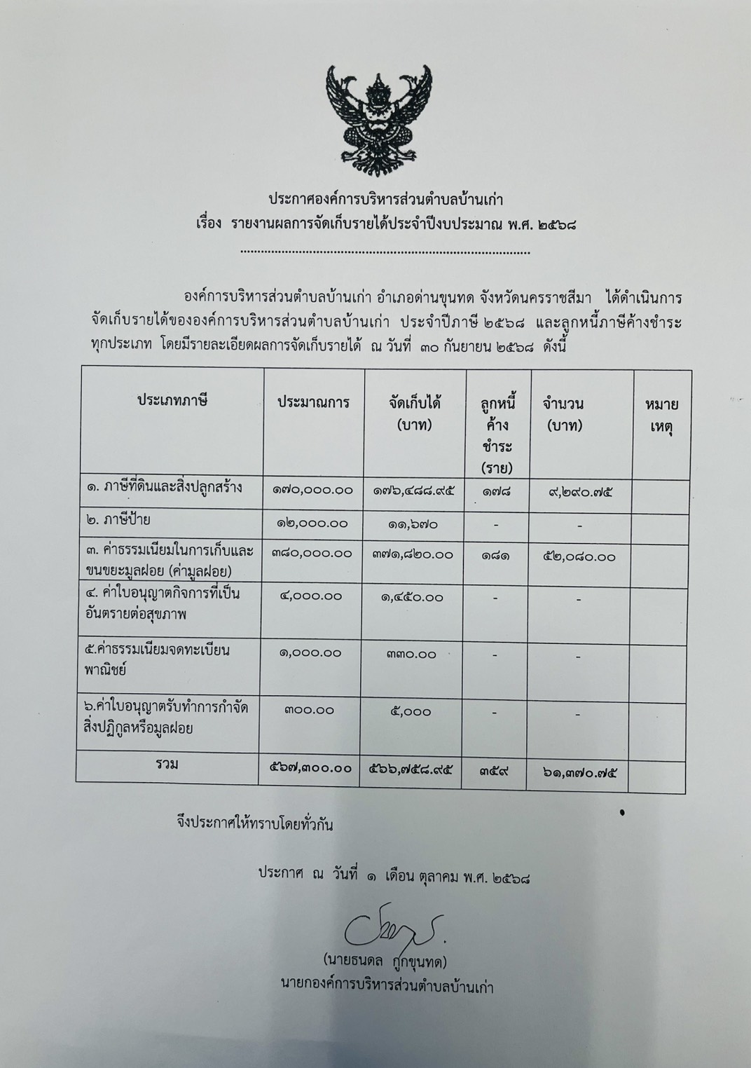 การจัดเก็บภาษีป้ายในเขตองค์การบริหารส่วนตำบลบ้านเก่า ประจำปี พ.ศ.2568 |